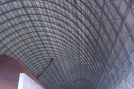煤場封閉料倉網(wǎng)架結構與其它建設相比,在使用中、設計、施工及綜合經(jīng)濟方面都具有優(yōu)勢,造價低,可隨時移動。